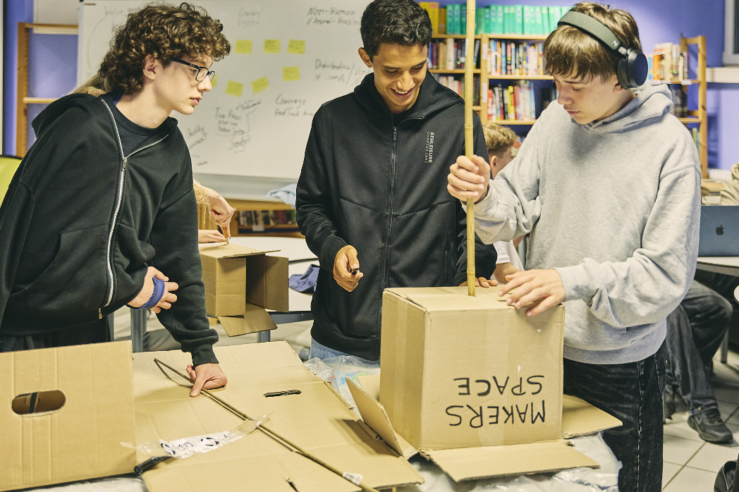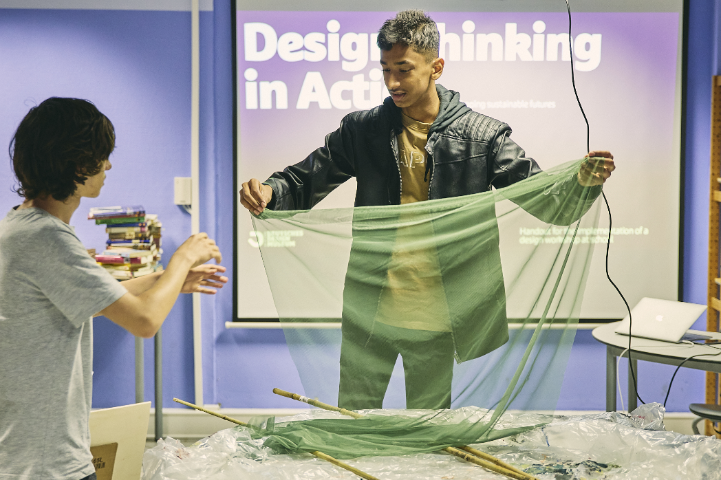Das Projekt “Design Thinking in Aktion – Zukunft nachhaltig gestalten” vermittelt jungen Menschen verantwortungsvolles Handeln und nachhaltige Gestaltung in einem praxisorientierten Design-Workshop an Schulen. Im Workshop werden die Schüler:innen mit einer Handreichung angeleitet, umsetzbare Projekte in Gruppen für die Schulgemeinschaft und ihr direktes Umfeld unter Berücksichtigung ethischer Prinzipien zu entwickeln. Die Jugendlichen durchlaufen dabei den Design-Thinking-Prozess, innerhalb dessen sie in Teamarbeit eine Projektidee entwickeln, die der Schulgemeinschaft oder dem direkten Umfeld zugutekommen soll. Dies kann z.B. ein Ort zur gemeinschaftlichen Nutzung an der Schule, eine Sharing-App für Arbeitsmaterial oder ein Bienenhotel für den Schulgarten sein.